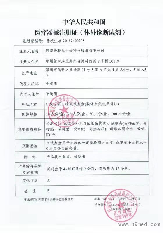 榮譽(yù)資質(zhì) 中華人民共和國(guó)醫(yī)療器械注冊(cè)證(體外診斷試劑)