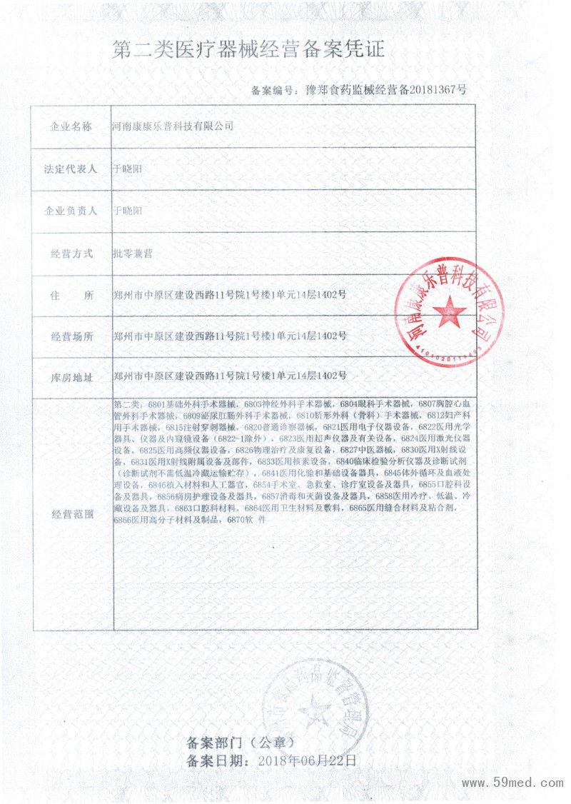 二類醫(yī)療器械備案憑證