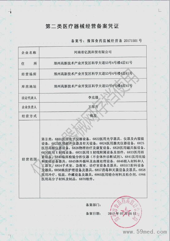 第二類醫(yī)療器械經(jīng)營備案憑證