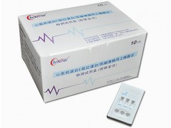 心肌鈣蛋白I(cTnI)是心肌鈣蛋白復(fù)合物的亞單位,當心肌損傷后釋放到血液中,4-6小時后開始升高。cTnI具有高度的心肌特異性和靈敏度,是目前公認理想的心梗確定標志 物。肌紅蛋白(MYO)在心梗發(fā)生后1小時血液濃度就可升高,是心肌梗死早期標志物,但其特異性較低。肌酸激酶同工酶(CK-MB)是在心肌損傷3-4小時后,開始在血液中升高,更具心臟 特異性。三種心臟標志物聯(lián)合檢測可提高AMI的診斷價值。